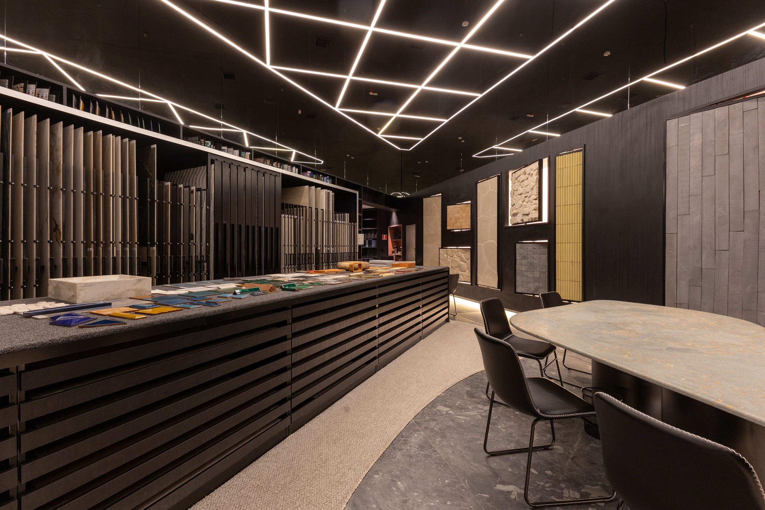Projetada por José Ricardo Basiches, a loja reflete a essência da marca com um conceito que combina galeria de arte e centro de experimentação. A iluminação cênica valoriza as texturas e cores dos produtos, enquanto a estética minimalista e contemporânea cria uma atmosfera acolhedora e convidativa.